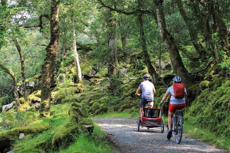Embark on a self-guided cycling adventure through Donegal's Glenveagh National Park, featuring rugged mountains, serene lakes, and native oak woodlands.