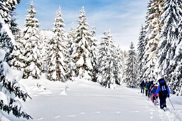 From downtown Vancouver we set off on the short and scenic drive high into the mountains. Arriving at the lodge, we give a short demonstration on the equipment before we begin our snowshoe adventure. Put your snowshoes on and follow us into the serene beauty of a natural winter playground. Breathe in the crisp, fresh winter air and feel the powder crunch beneath your feet as we hike through the forest. Along the way we learn about the rich culture of the Squamish First Nation who have flourished for thousands of years in this wild and rugged landscape. Our route ventures off the beaten path and meanders beneath the ancient giants of the old growth forest.
