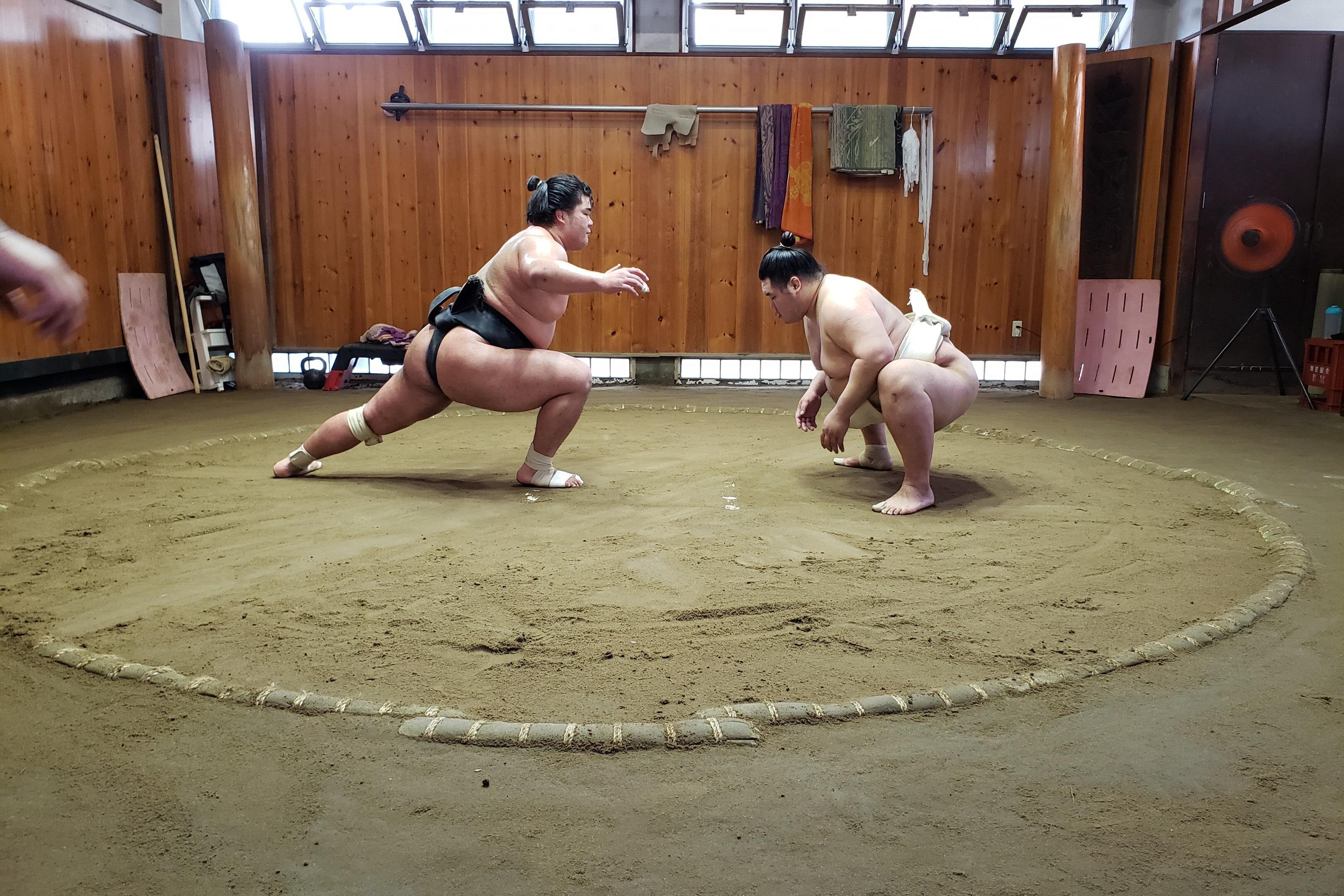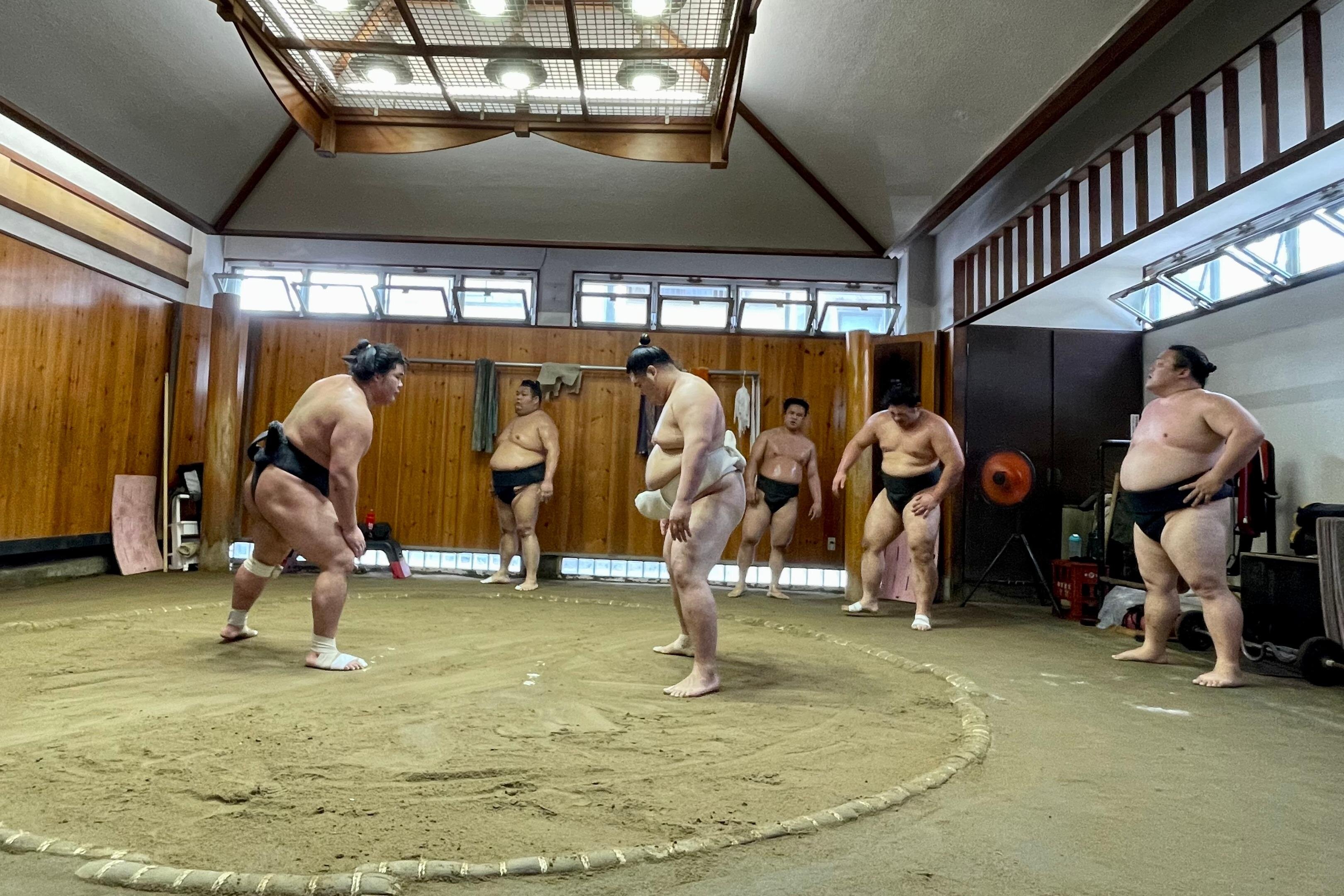 - Witness sumo wrestlers' intense morning training