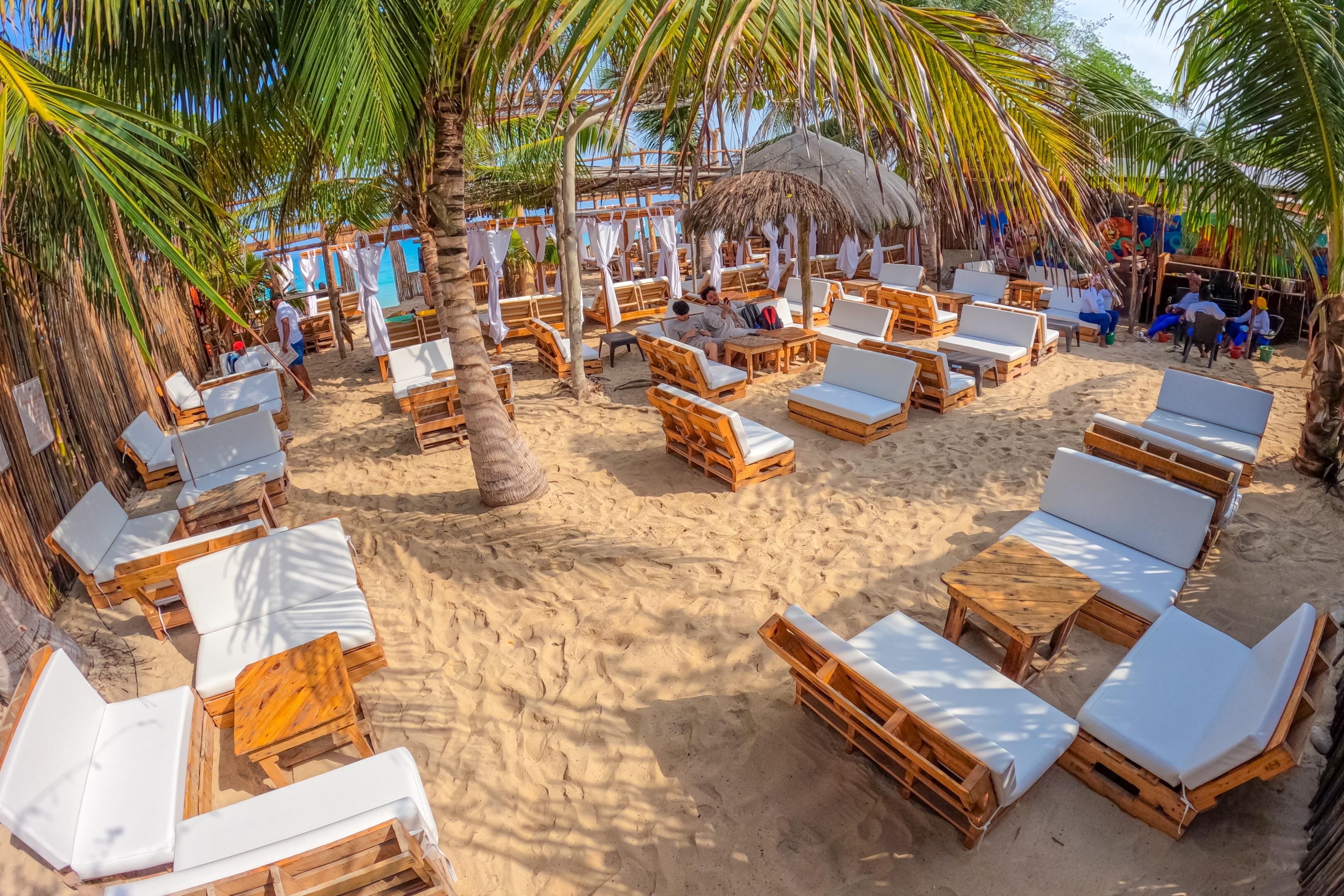 Enjoy a full-day VIP experience at Mambo Beach Club in Playa Blanca Barú, including round-trip transportation from Cartagena, reserved seating, and a welcome drink.